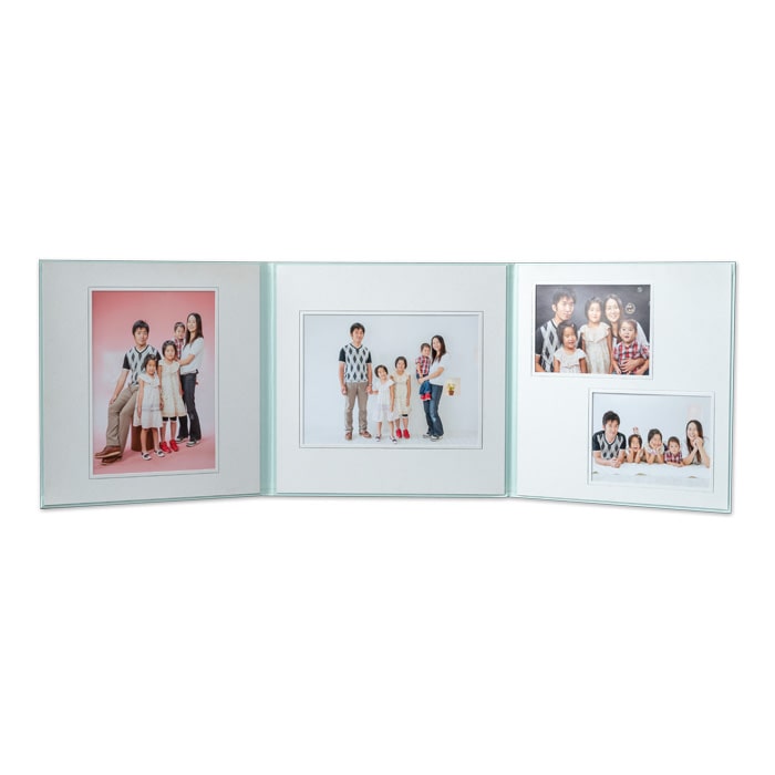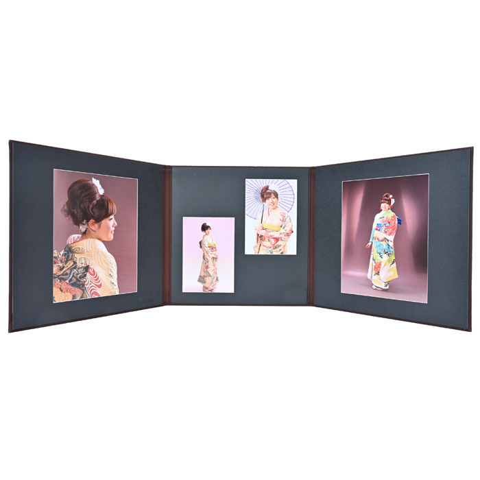 六切・四切・キャビネ・デザインの中からお好みのサイズで作成可能。枚数に関わらず、どの組み合わせでも一律料金でとってもお得な台紙です