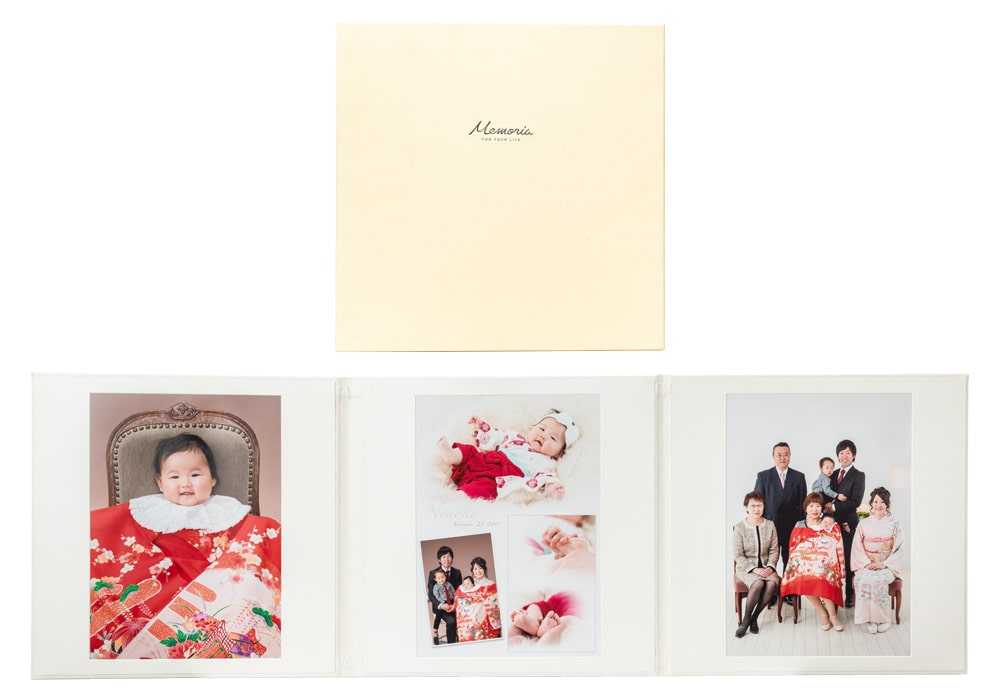 化粧箱・ラミネート加工付きで大事なお写真を傷や汚れから守ります。表紙写真付き
